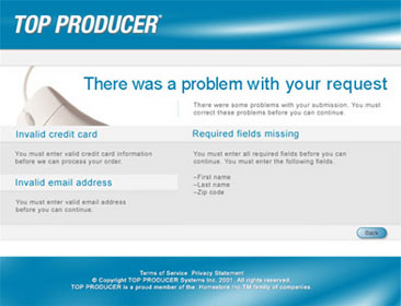 Interface and client forms designed for an online software application, created while working for a large software developer, Top Producer Systems a Homestore Company.