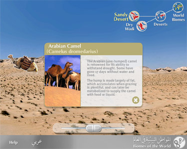 Touch screen designs for the Sultan Bin Abdul Aziz Science and Technology Centre in Saudi Arabia while working as an independent communications designer in a nine months contract at The Lunny Communications Group Interactive Division.